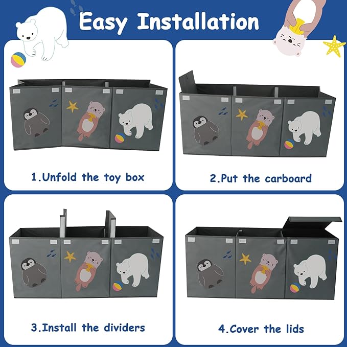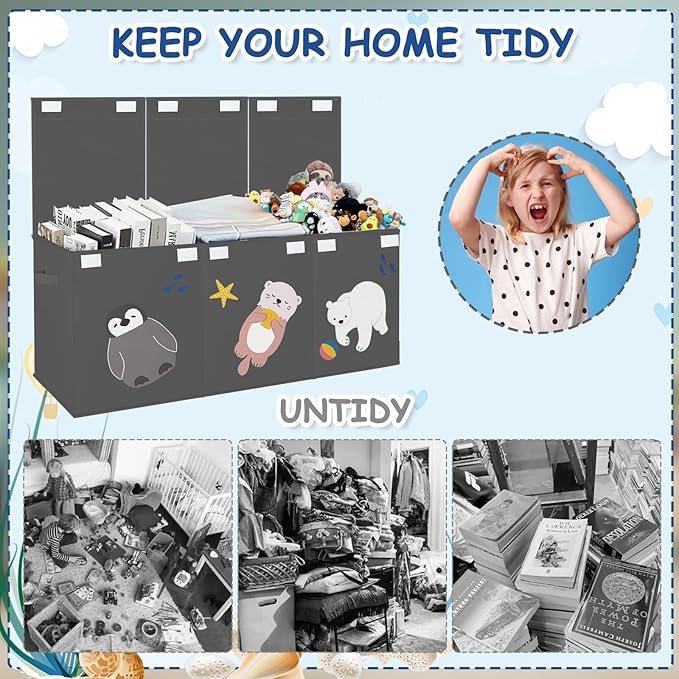 - 【Durable & Foldable】Its a foldable toy organizers and storage with flip-top lid,Toy storage made from oxford cloth fabric and thickened cardboard, which is durable, breathable and waterproof.