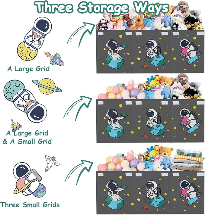 Large Toy Box Storage Organizer,Sturdy Toys Storage Chest Bin Basket with Dividers and Lids for Toddlers,Boys,Girls,Nursery,Closet,Living Room Area,Playroom(Grey Astronaut)