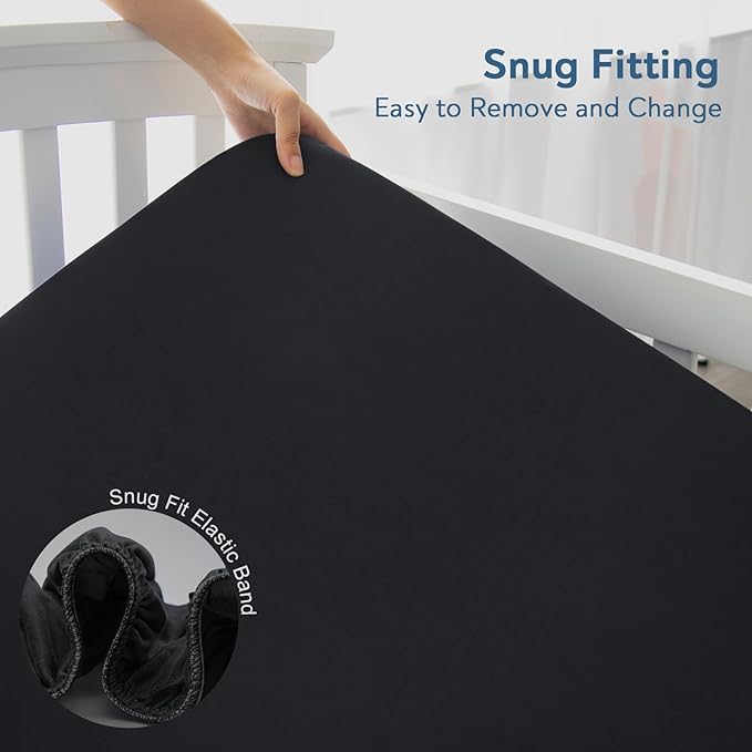 Waterproof Crib Sheets for Boys 2 Pack, Fitted Baby Crib Sheet Neutral 52" x 28" for Standard Crib and Toddler Bed Mattress, Soft and Breathable Kid Toddler Sheets for Boys or Girls, Black