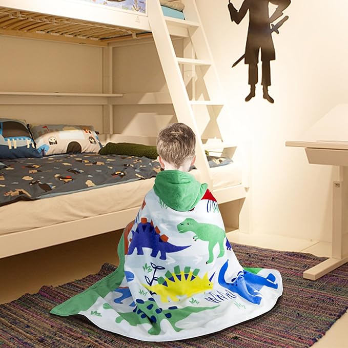 - 【Popular Prints】The prints of the hooded towel ponchos are popular with kids. It includes dinosaurs, sharks and space for boys, mermaids and unicorns for girls. The latest printing and dyeing technology makes the colors bright and colorfast.