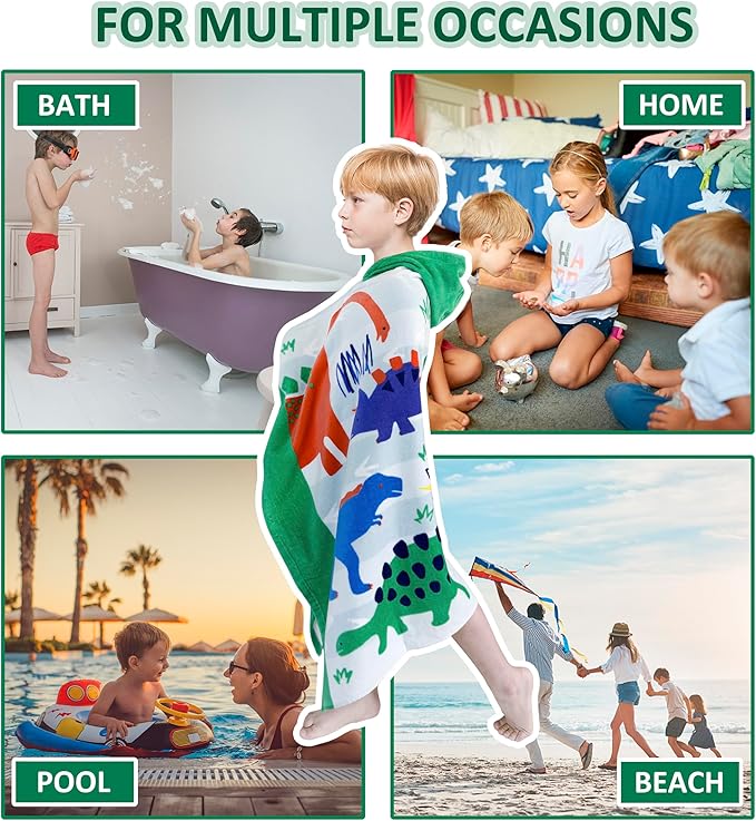 - 【Multi Uses】This hooded towel is a oversized Style. It allows children to move freely and flexibly without feeling constrained. It can be a hooded bath towel , beach towel and pool towel, as well as cover-ups after swimming at pool or beach.