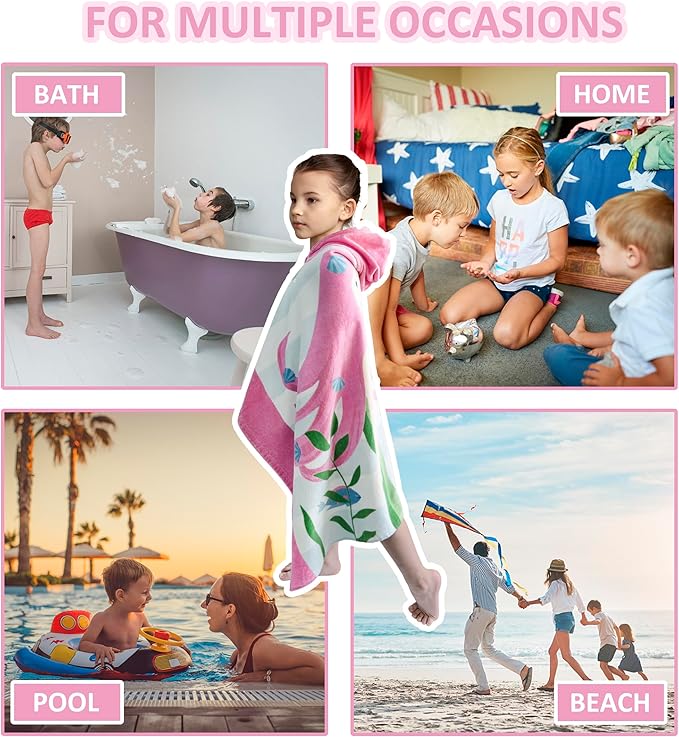 - 【Multi Uses】This hooded towel is a oversized Style. It allows children to move freely and flexibly without feeling constrained. It can be a hooded bath towel , beach towel and pool towel, as well as cover-ups after swimming at pool or beach.