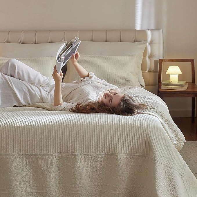 - ALL-SEASON COMFORT: This Oversized bedding set is designed for year-round use. Lightweight and breathable queen or California king size is perfect for beds, guest rooms, or seasonal refreshes. Enjoy versatile, year-round comfort with this durable quilt set.