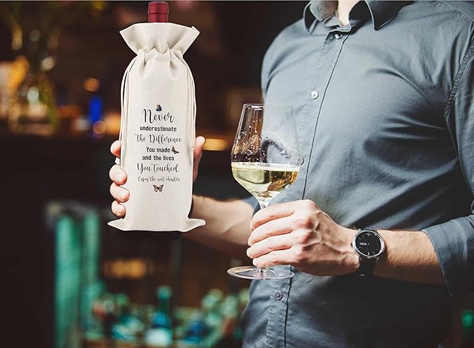 Never Underestimate The Difference You Made And The Lives,Thank You Gifts for Colleagues,Friends,Employee,Bosses,Gift for Encouragement,Boss Day Decorations,Reusable Wine Bags With Drawstring,L21