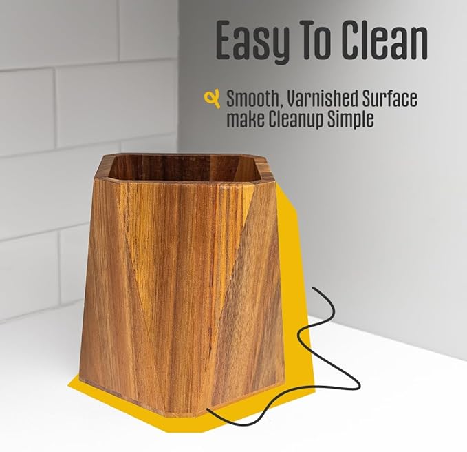 - Reliable Utensil Holder: Made from durable acacia wood, this wooden utensil organizer stands up to daily wear and moisture with ease. It's your trusty companion in the kitchen, designed to endure and elevate your kitchen accessories.
