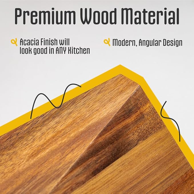 - Blend of Form and Function: Our wooden kitchen utensil holder, crafted from acacia wood, combines natural elegance with practicality. Its warm tone and captivating wood grain patterns add rustic charm to your kitchen decor.