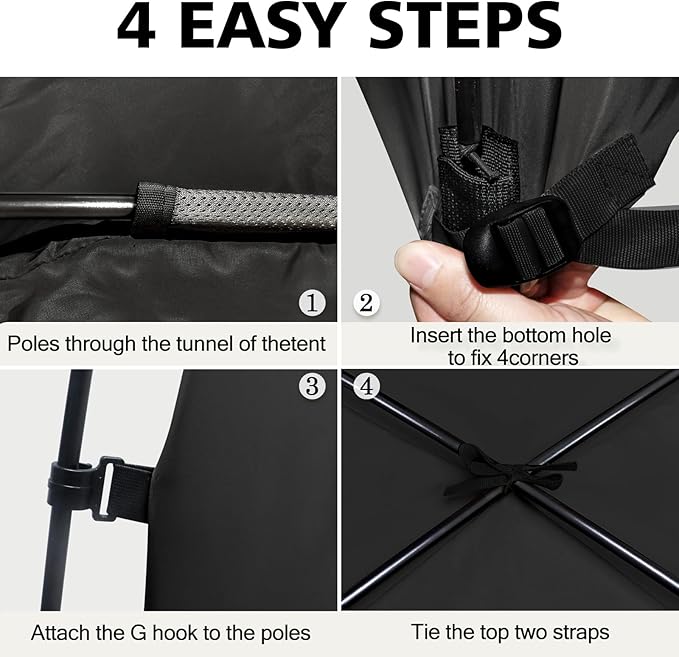 - Easy to Set Up: 2 fiberglass poles through the tunnel of the tent, insert the bottom hole to fix 4 corners, super easy to set up in a minute. Size is 80"x60"x55" H, please measure your bed size before purchasing the bed tent.