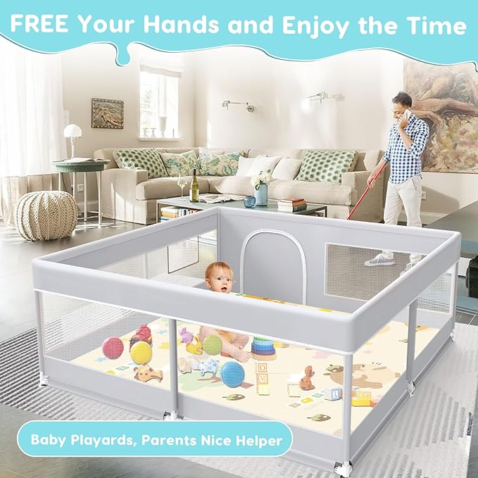 - [FREE YOUR HANDS AND ENJOY YOUR TIME]Our baby playpens can provide a great safe space to prevent them from getting lost or touching dangerous areas. Parents can free up their hands to do any things, such as cooking, cleaning, reading, no longer need to be worrying about their baby's safety, and you can check the status of your baby at any time, which is perfect for busy parents who want to provide their children with a safe and entertaining place to play while they are at work or leisure.