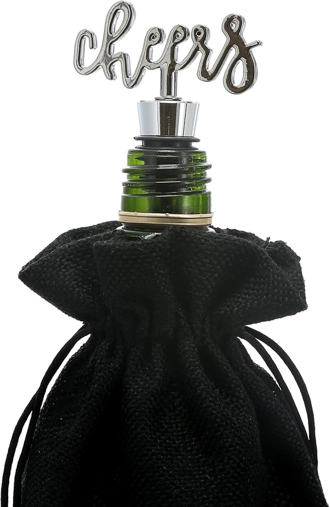 - IN-HOUSE DESIGN: "Cheers To You" white text is screen-printed onto the front of the bag, while the stopper features a cursive "Cheers" silver text.
