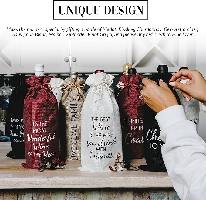 - PERFECT GIFT: Wonderful present for a housewarming or apartment-warming event. An excellent piece for wine lovers, vineyards, wineries, bachelorettes, or graduation parties. An added bottle of Merlot, Riesling, Chardonnay, Gewürztraminer, Sauvignon Blanc, Malbec, Zinfandel, Pinot Grigio, and red or white wine lovers.