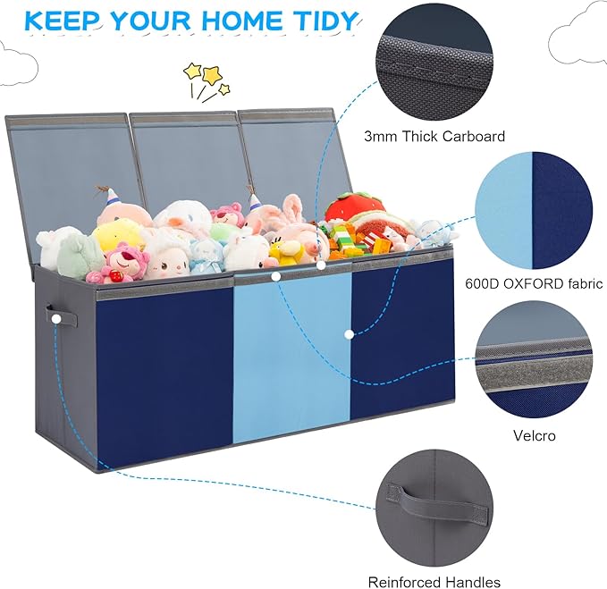 Large Toy Box Chest with Lid, Oxford Collapsible Sturdy Toy Storage Boxes Bins Baskets for Boys, Girls, Closet, Playroom, Nursery Room, 39"x15.5"x13" (Light Blue & Dark Blue)