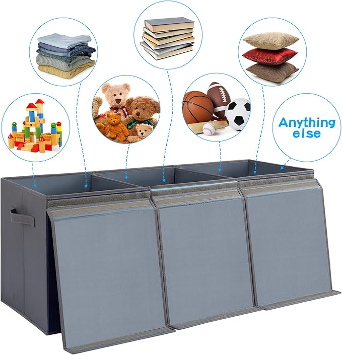 - Large space: The unfolded size of the toy storage box is 40 x13 x 15.5 inch/ 99 x 33.5 x 40cm (L X W X H), enough to hold all kinds of toys including stuffed toys, groceries, clothes, books, building blocks, etc.