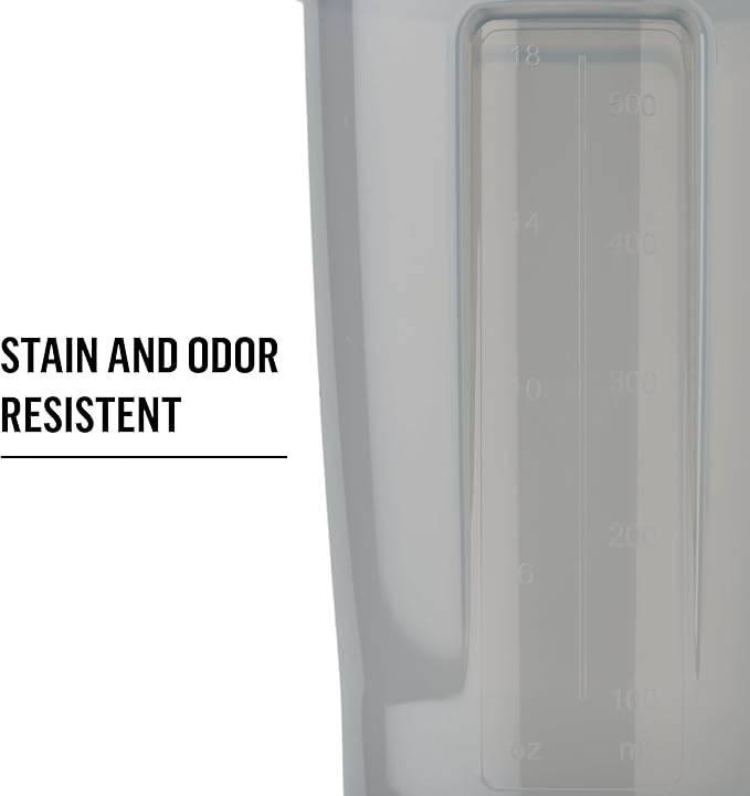- 24-ounce capacity (note: measurements only go to 18 ounces) sleek and durable Pro24 shaker cup for mixing protein shakes, smoothies, and supplements