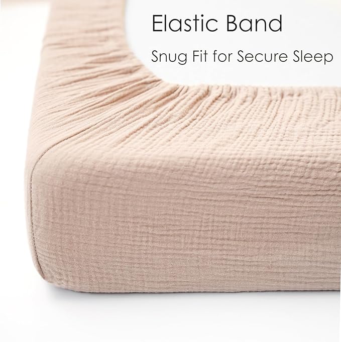 - Soft and Breathable: Crafted from 100% Muslin Cotton, the baby crib sheets are a tender embrace, offering a cloud-like softness and excellent breathability for your baby's sweetest dreams.