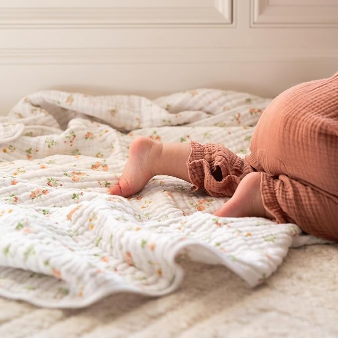 aden + anais Essentials Dream Blanket, Muslin Baby Blankets for Girls & Boys, Ideal Lightweight Newborn Nursery & Crib Blanket, Country Floral