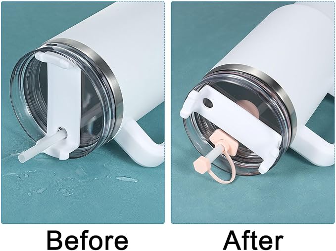 • Advantage: The spill stopper is made of silicone material, which is flexible, durable and convenient to clean. The straw cap can prevent water from spilling out of the straw and keep dust out. The round stopper is installed on the inner side of the cup lid, which ensures sealing while allowing air to enter for easy drinking. The square stopper is installed on the outer side of the cup lid, securing the straw in place and forming a seal to prevent leak.