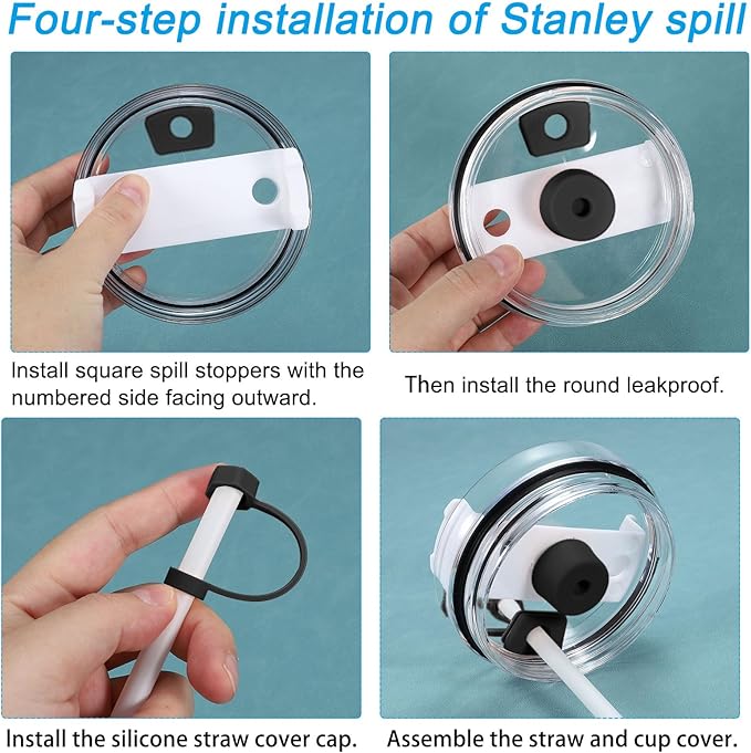 • Advantage: The spill stopper is made of silicone material, which is flexible, durable and convenient to clean. The straw cap can prevent water from spilling out of the straw and keep dust out. The round stopper is installed on the inner side of the cup lid, which ensures sealing while allowing air to enter for easy drinking. The square stopper is installed on the outer side of the cup lid, securing the straw in place and forming a seal to prevent leak.