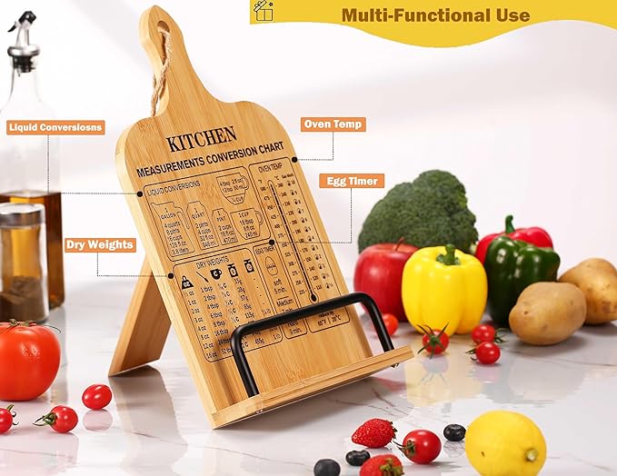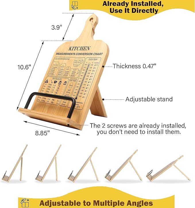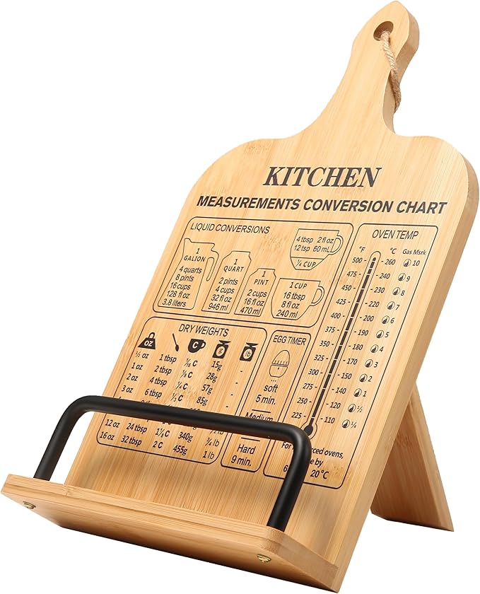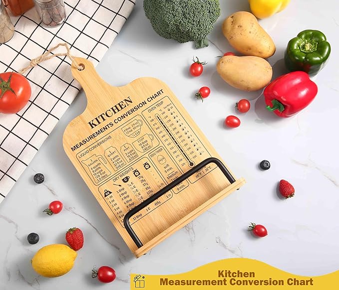 Adjustable Bamboo Cookbook Stand for Kitchen Counter-Sturdy Cook Book Holder-Recipe Book Holder-Birthday Anniversary Housewarming New Home Wedding Christmas Gift-Kitchen Measurement Conversion Chart