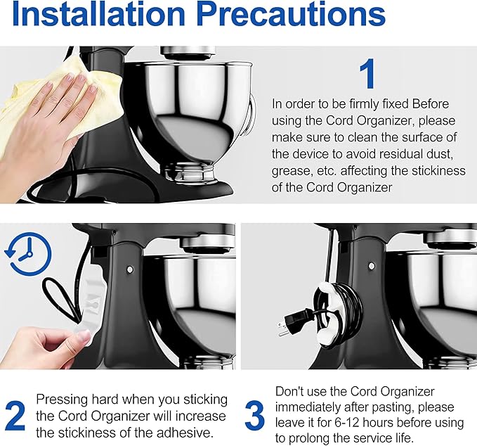 • EASY TO INSTALL: Sticky adhesive pad ensures quick install on your appliance. Wipe clean, remove any grease, dust or oil on appliance before applying our kitchen appliance cord winder, place 6hrs before using for better effect