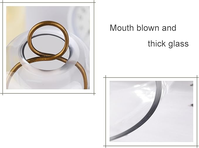 5" & 4" Wide Versatile Metal Candle Holder with Handmade Sturdy Glass Dome in Brass for Pillar Candle & Plants, 5.1" xH11.8 4" xH7.5, Industrial, Farmhouse, Shabby Chic. (2, Brass, Large & Small)
