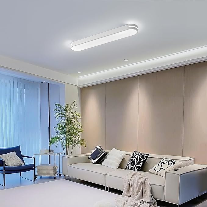 - 【Selected Premium Material】Made of high-quality metal iron and acrylic materials, this flush mount linear led light fixture has a solid metal ceiling mount, white painted surface and acrylic lampshade, high light transmittance and durable. Built-in LED chips makes this dimmable LED ceiling light energy saving and eyes protection. When providing you with perfect lighting, is not only anti-glare and no flicker, but also reduces eye fatigue after work or study.