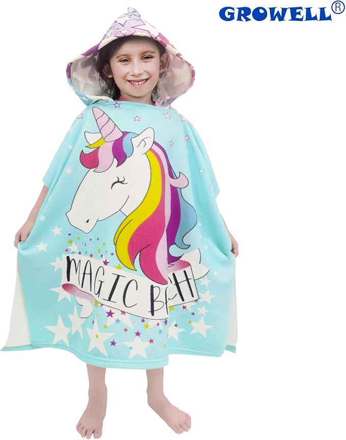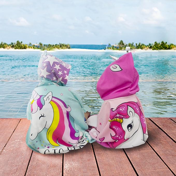 Hooded Kids Beach Towels - Toddler Bath Towel Girls Boys Swim Cover-ups for Ages 1 to 6 Kids Pool Towels Quick Dry Lightweight Soft Microfiber Poncho Towel 24x23 (Unicorn Aqua)