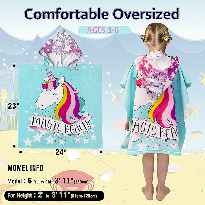 - 【Multi Uses】There's enough room to wrap around and cuddle up in. This poncho beach towels for kids are designed to dry their body or keep warm for kids, girls, and boys. It’s great for after the beach, pool, or bath, as well as to cover up before and after swim lessons. The size is 24"W x 24"L for kids around 27" to 46" height.