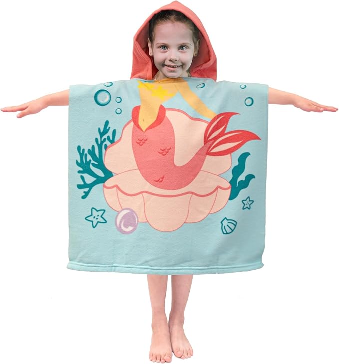 Hooded Kids Beach Towels - Toddler Bath Towel Girls Boys Swim Cover-ups for Ages 1 to 6 Kids Pool Towels Quick Dry Lightweight Soft Microfiber Poncho Towel 24x23 (Mermaid Seashell)