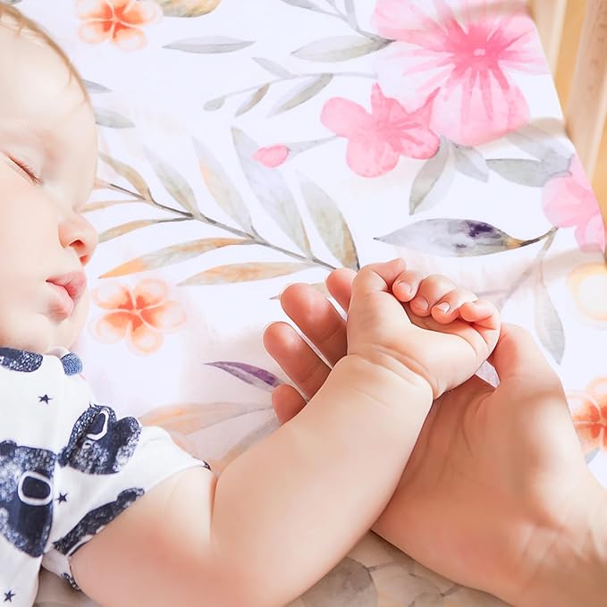 - 【Easy Care】: Simply toss this floral crib sheet into the washing machine on gentle cycle and they'll be as good as new. Please be careful not to let this product direct contact with undiluted laundry detergent to avoid local fading. Try to avoid sun exposure, can dry it on the reverse side. The high-quality fabric ensures that standard crib sheet retains its shape, color, and softness even after multiple washes, making it a practical and long-lasting investment.