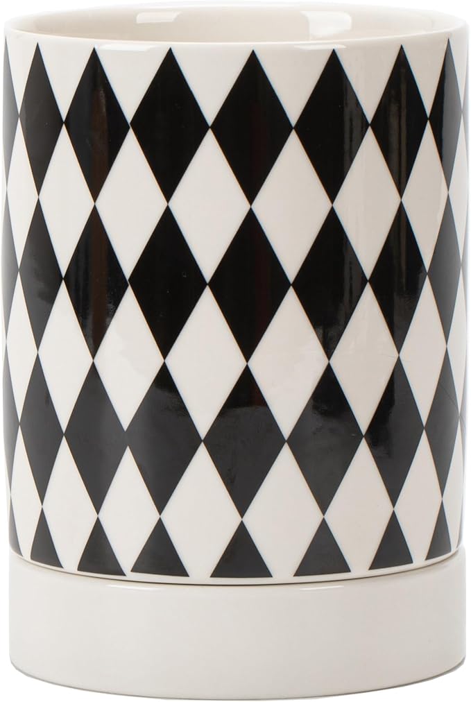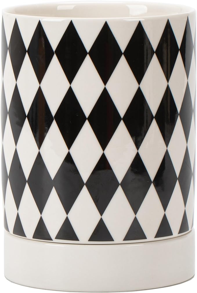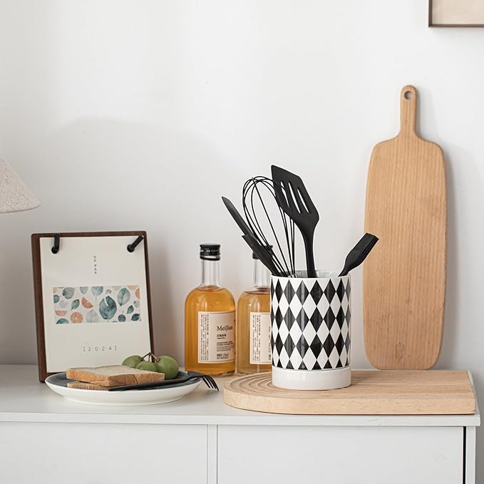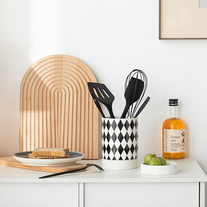 Small Utensil Holder for Kitchen Counter 4.1 x 6 Inches Ceramic Cooking Utensil Crocks Countertop Organizer Vintage Farmhouse Kitchen Decor Caddy,Diamond
