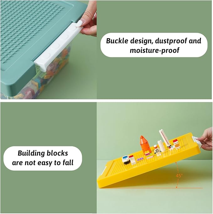 - ❤Building Blocks Baseplate Lids - Our storage box has creative block baseplate lids that are compatible with most bricks, you and your children can build a variety of small particle building block toys and anything else you can imagine. It integrates storage and construction, saving space and making storage more convenient.