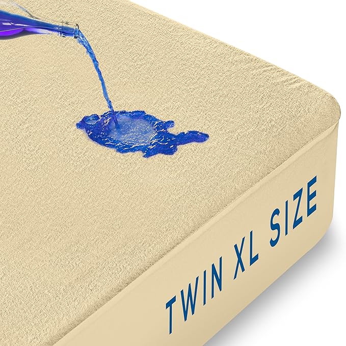 Utopia Bedding Waterproof Mattress Protector Twin XL Size, Premium Terry Mattress Cover 200 GSM, Breathable, Fitted Style with Stretchable Pockets (Beige)