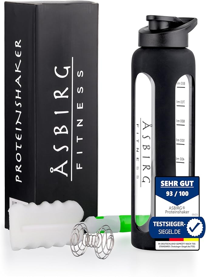 Fitness Glass Protein Shaker 1 Litre Protein Shaker Drinking Bottle with Spiral Ball Black 1000 ml