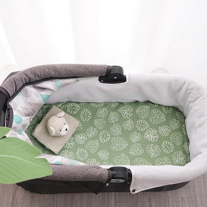 david's kids 3 Pack Bassinet Sheets, Ultra Soft Breathable Comfortable Baby Sheet Set for Boys Girls Neutral, Univeral Fit for Most Cradle and Bassinet Mattress, Leaf