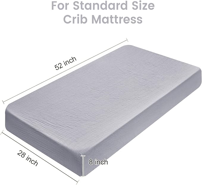 - 100% Muslin Cotton: Our crib sheets are designed with premium double-layer muslin cotton fabric, which is gentle on baby's skin, breathable, and comfortable, making it perfect for delicate baby skin. As time goes by, these sheets will become softer and softer, providing a soothing sleeping environment for your little one.