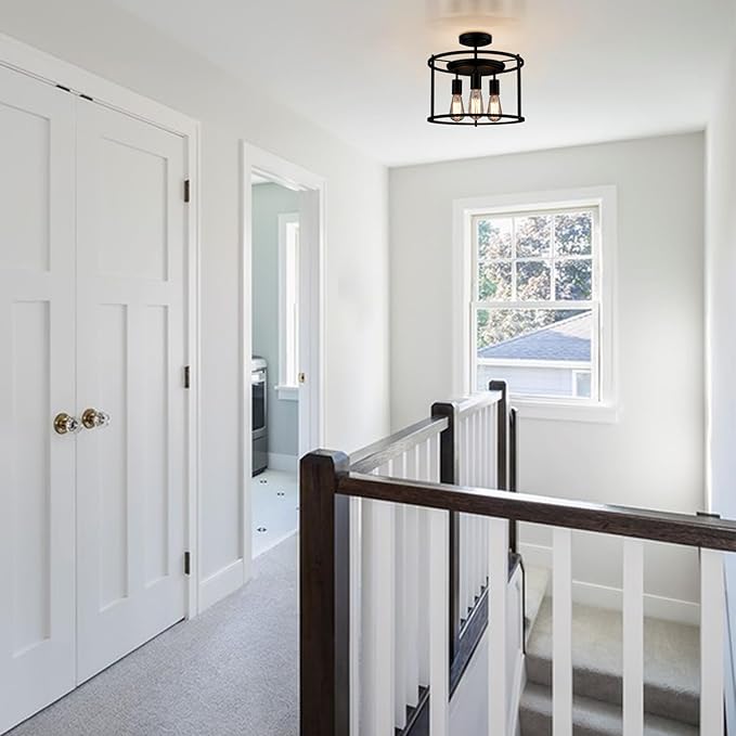 Farmhouse Semi Flush Mount Ceiling Light Industrial Kitchen Ceiling Light Matte Black for Bedroom, Living Room, Hallway, Entryway, Proch