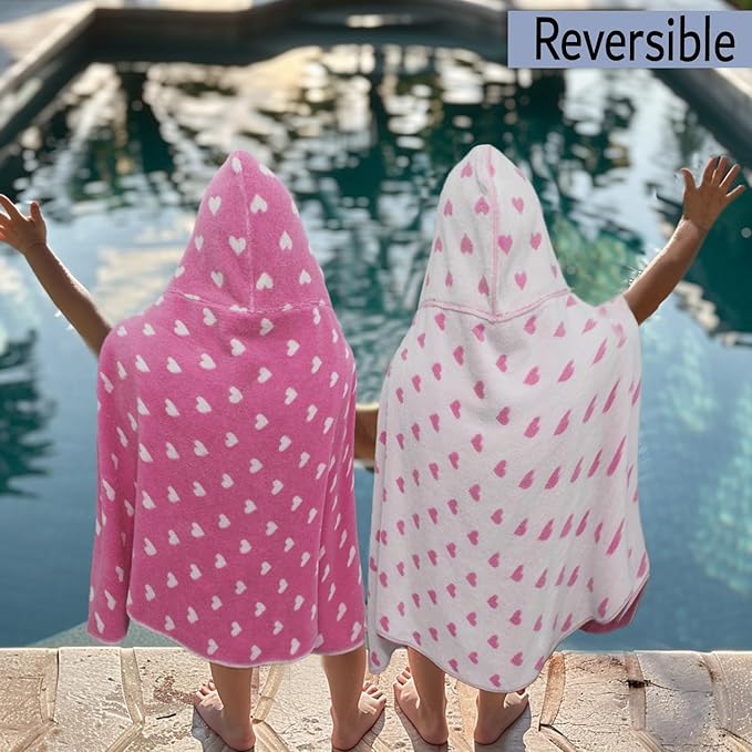 - Reversible Playful Hearts Design: On one side, your little one will be greeted by a cascade of playful pink hearts adorning a white base. But the magic doesn't stop there! Flip over for a delightful surprise – a white background adorned with charming pink hearts, allowing your child to choose their favorite side or switch it up for a fun and fresh look each time they use it. Perfect for indoor and outdoor use as a bathroom, home, beach, or pool accessory.
