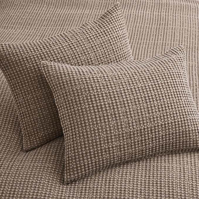 Levtex Home Mills Waffle Full/Queen Quilt Set (88x92in) with 2 Pillow Shams (26x20in) - Cocoa - Cotton Waffle Full/Queen Size Quilt Bedding Set - Lightweight, Soft, Pre-Washed