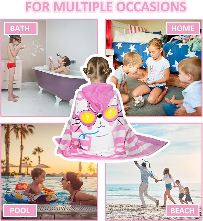 - 【Multi Uses】This hooded towel is a oversized Style. It allows children to move freely and flexibly without feeling constrained. It can be a hooded bath towel , beach towel and pool towel, as well as cover-ups after swimming at pool or beach.