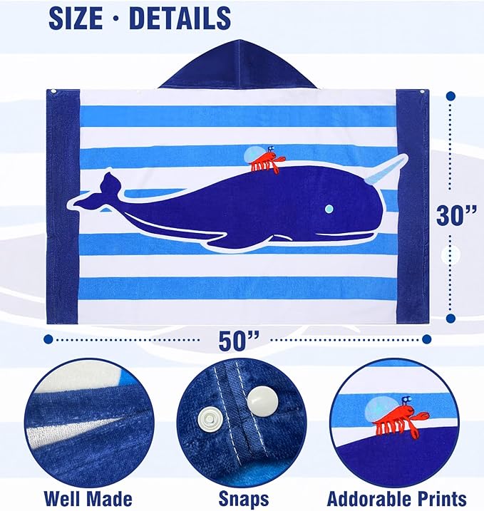 - 【Fully Wraps Around】This kids bath towel is designed with a hood and 2 pairs of snap buttons on the front. This design keeps kids fully wrapped and the towel won't drop off even when they run around. It's great to wrap kids with this wearable poncho towel after bathing and swimming.