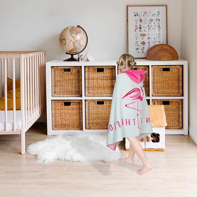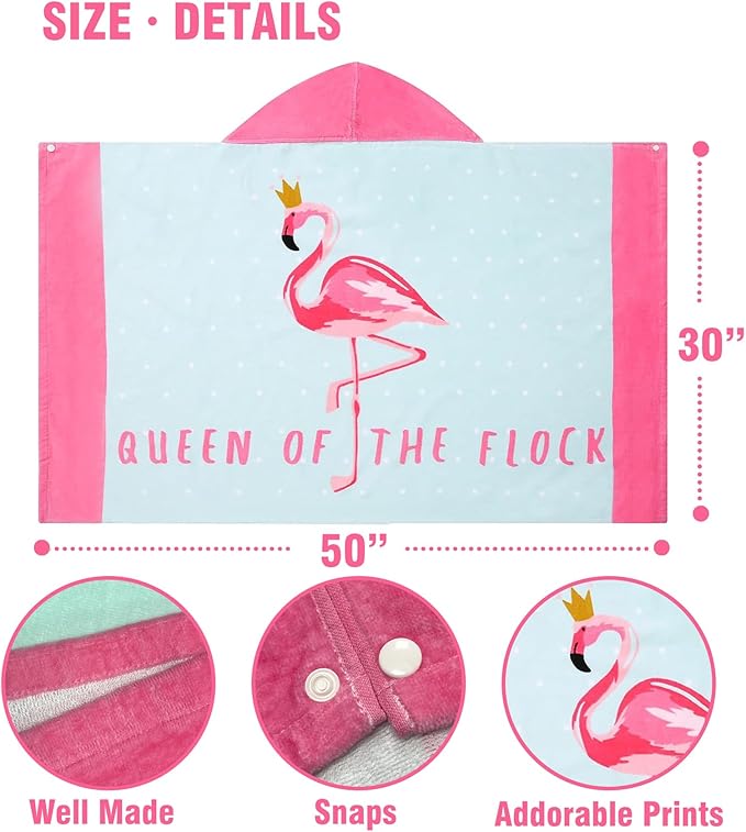 Toddler Bath Towel Hooded - Cotton Kids Beach Towel 30"x50" for Ages 3 to 10, Soft Terry Poncho Towel as Pool Swim Cover Ups for Girls Boys (Flamingo Aqua)