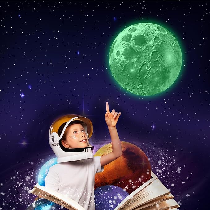 - Sweet Dream for Kids - Our glowing moon will create a calm and more relaxed environment to fall asleep in. Let your kids lie down and gaze at an illuminated moon which gets more dramatic with the darkness – not only does it help your children fall asleep but also helps take away their fear of darkness.