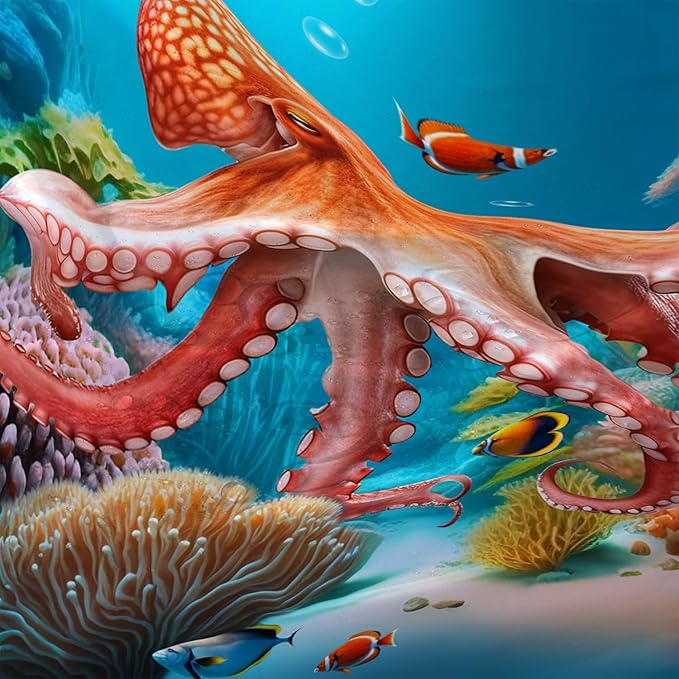AILONEN Kawaii Octopus Shower Curtain,3D Octopus Turquoise Themed Bath Curtain Cloth Fabric Bathroom 48" W*72" H Inch,12 Pack Hooks for Kids Child,Boho Mandala Ocean Theme Bathroom Curtain