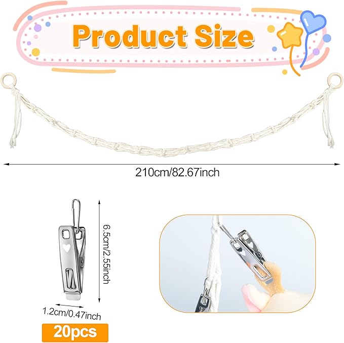- 【Sturdy and Durable】This stuffed animal hanging chain is made of thick cotton rope and wooden hoop, which is more stronger and durable. And the clips are made of stainless steel, with strong load-bearing capacity and durability, can hold your plush doll for a long time.