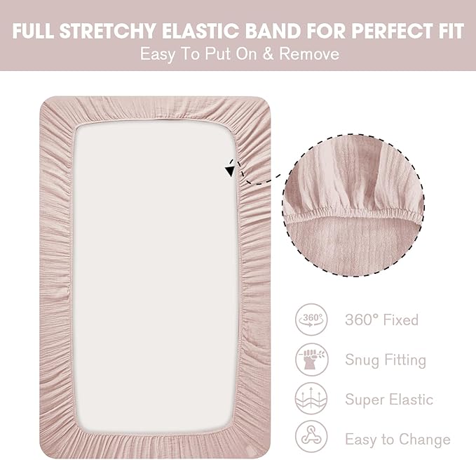 - 100% Muslin Cotton - The baby crib sheets set is made of ultra soft muslin cotton, super comfortable, skin-friendly and cozy to the touch, does not irritate baby's delicate skin. Breathable fabric ensures your baby a restful night's sleep;