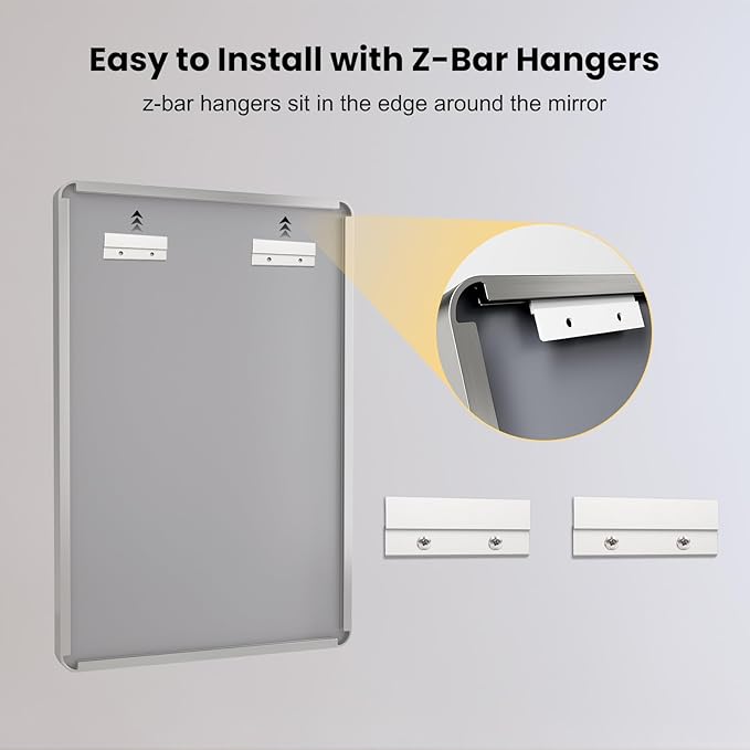 - 【Secure & Easy Hanging Option】: The sturdy wall mirror includes two Z-bar brackets; The brackets are sturdy enough to support the weight of the mirror and ensure the mirror stay securely and sturdily against the wall; Very easy to install