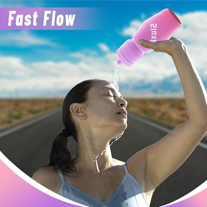 - 🚴Excellent Material: The SLUXKE cycling water bottle uses food-grade PP5 resin material, which is a high-quality material that is anti-erosion and oil-resistant. 100% BPA-free, non-toxic, and odorless for safe drinking. the 720ml capacity water bottle is thick, durable, and reusable, A perfect squeeze water bottle for bike cages.