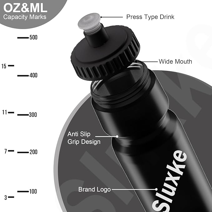 - đ´Excellent Material: The SLUXKE cycling water bottle uses food-grade PP5 resin material, which is a high-quality material that is anti-erosion and oil-resistant. 100% BPA-free, non-toxic, and odorless for safe drinking. the 720ml capacity water bottle is thick, durable, and reusable, A perfect squeeze water bottle for bike cages.