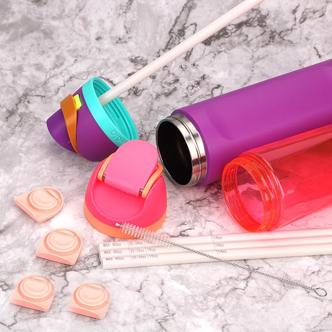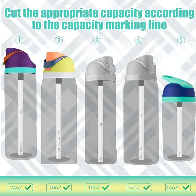 - Ideal Design: These water bottle stoppers are practical accessories with good sealing properties, which can effectively prevent leakage. The initial length of this straw is suitable for the Owala FreeSip 40oz. The surface of the straw is marked with a capacity scale and can be cut to the desired length according to the scale.