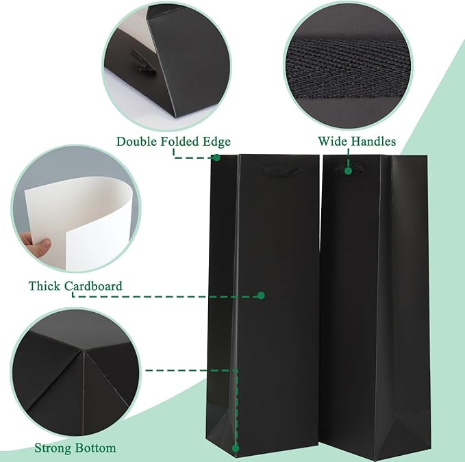 - 【Premium Quality】Wine gift bags with handles are made of thickened cardstock for a premium feel and durability. The widened handle ensures strong weight-bearing capacity, supporting up to 11 pounds (5 kilograms).
